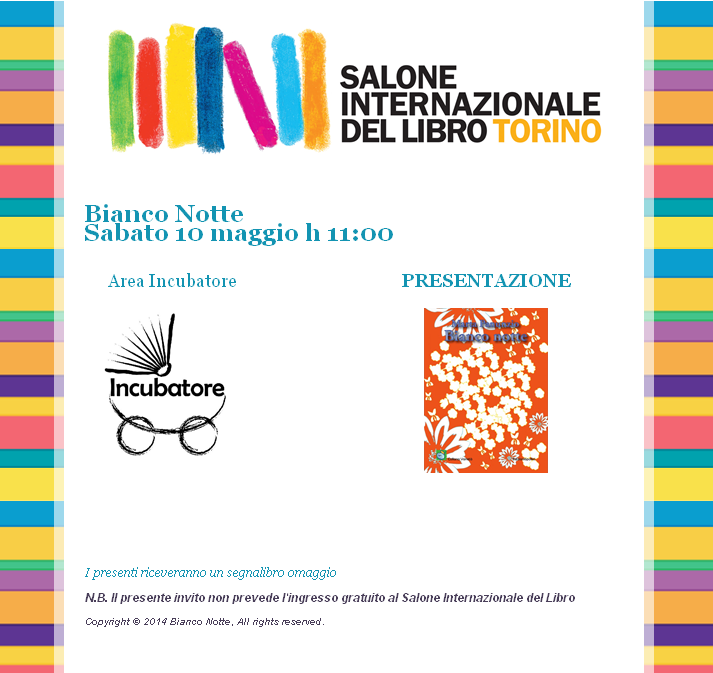 Salva l'invito alla presentazione di Bianco Notte al Salone Internazionale del Libro di Torino. Ti aspettiamo!